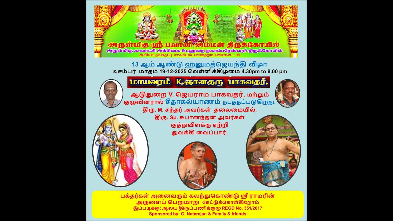 அருள்மிகு ஸ்ரீ பவானி அம்மன் திருக்கோயில்13 ஆம் ஆண்டு ஹனுமத்ஜெயந்தி விழா|19-12-2025 4.30pm| கொளத்தூர்