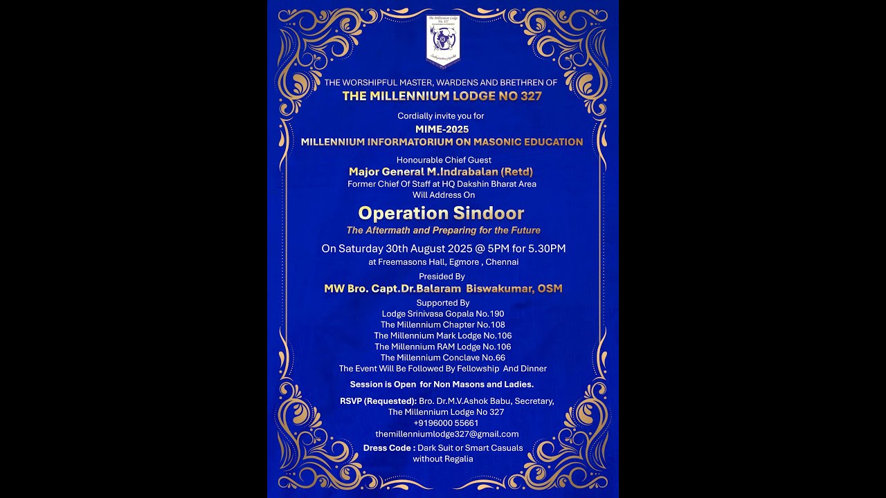Operation Sindoor The Aftermath and Preparing for the Future | 30-08-2025 5.30 PM | Freemasons' Hall