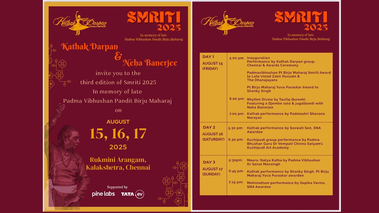 Smriti - 2025 Day - 1 | 15-08-2025 5:00 PM | Rukmini Arangam, Kalakshetra, Chennai.